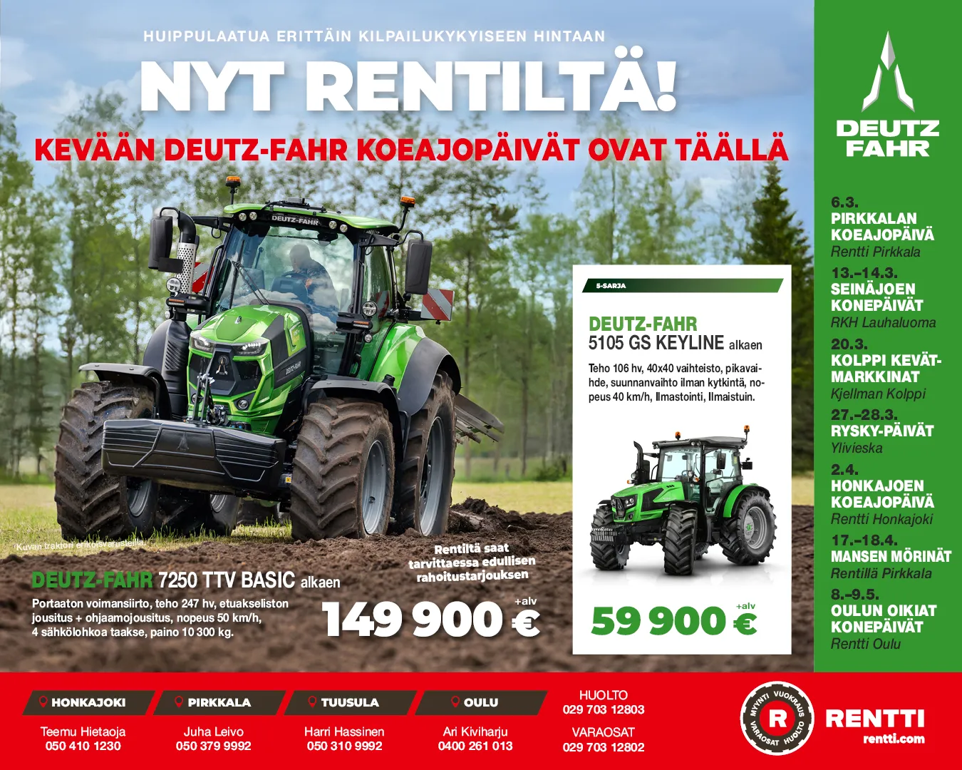 Koneliike Rentti toimii nyt Deutz-Fahr -traktoreiden uutena edustajana Suomessa, ja kevään aikana tuomme malliston tutustuttavaksi eri puolille maata.