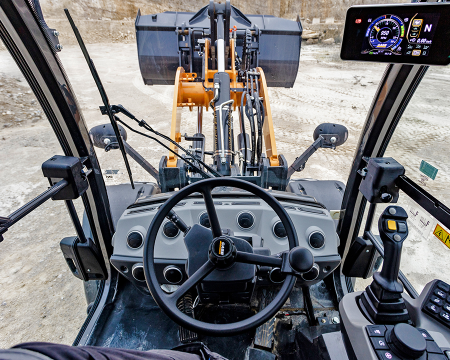 Case 421G:n ohjaamo on täysin uudistettu käyttäjien toiveita kuunnellen. Aikaisempaa suurempi tuulilasi ja matalampi etukonsoli parantavat näkyvyyttä, ja molemmin puolin olevat ovet tarjoavat helpon pääsyn ohjaamoon.