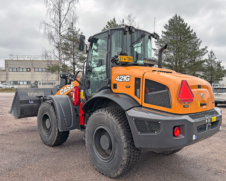 Uusi yhdeksän tonnin painoluokan Case 421G luovutettiin Rentin Tuusulan toimipisteestä joulukuussa. Kyseessä oli yksi ensimmäisistä Suomeen myydyistä uutuusmallin koneista.