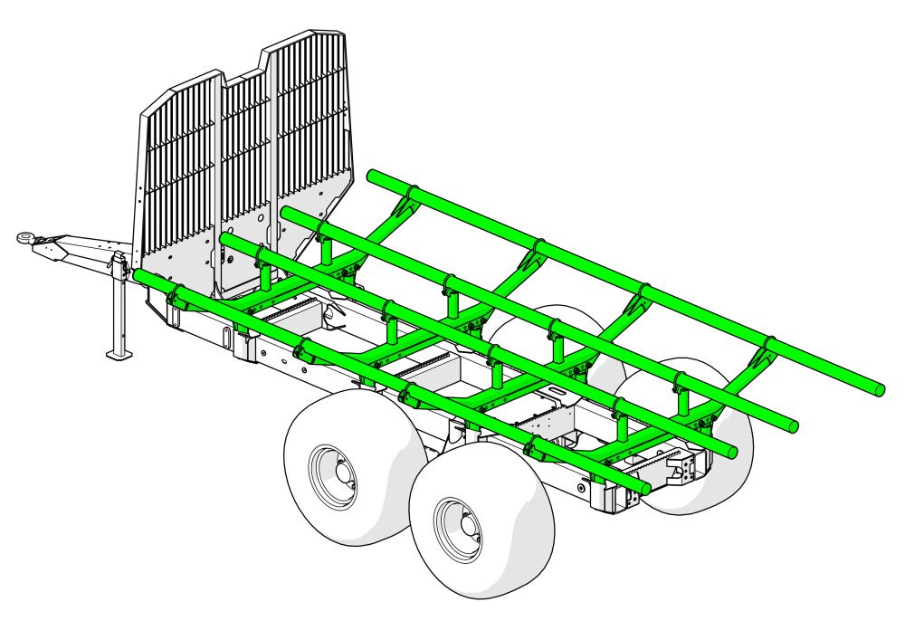 Paalikehikko on erinomainen valinta laajentamaan metsäperävaunun käyttömahdollisuuksia. Se on helppo ja nopea asentaa sekä irrottaa perävaunun rungosta. Sopii PALMS D- ja U-sarjan malleihin.