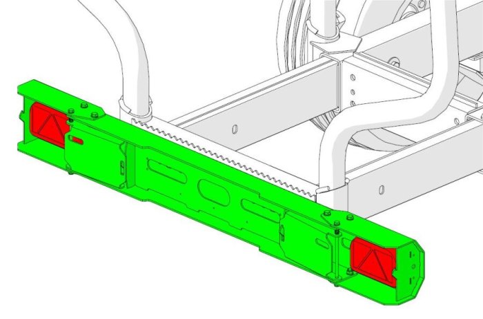 - Kokoontaitettavat takavalot voidaan taittaa kokonaan perävaunun rungon mittojen sisään metsätöiden ajaksi. Erinomainen vaihtoehto, jos tarvitset takavalot vain maantieajoa varten.