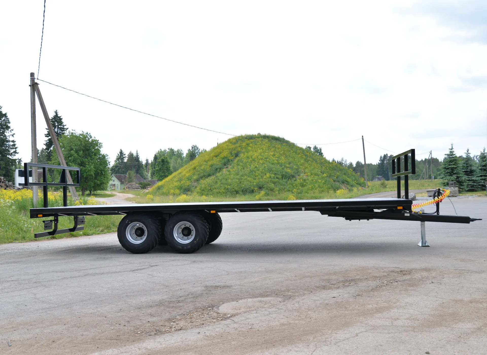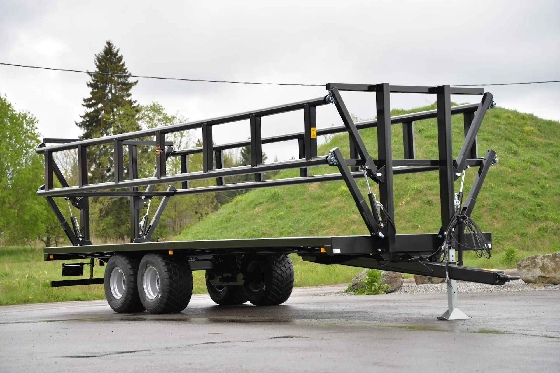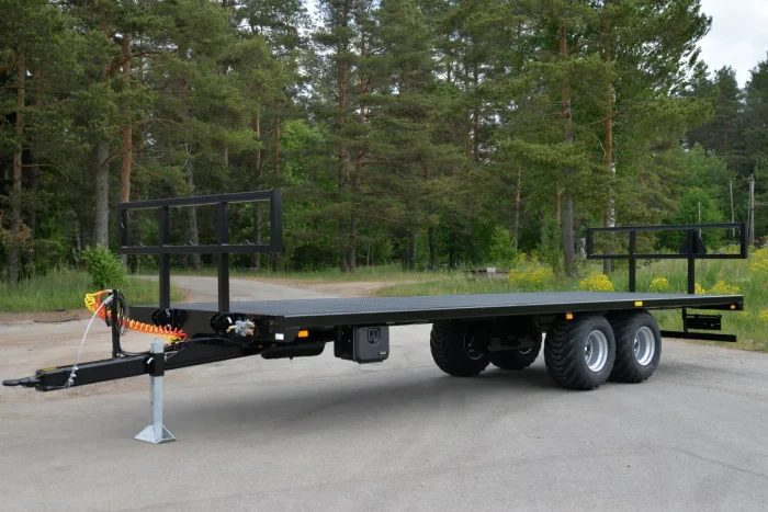 Lavettimalleina tarjoamme lastausalueeltaan 6,5–9,8 metrin perävaunuja. 7,5 metrin mallista alkaen perävaunun voi tilata myös hydraulisilla sivulaidoilla, jotka vähentävät merkittävästi kuorman kiinnittämiseen kuluvaa aikaa. Sivulaitojen hydrauliikassa on turvaventtiilit, jotka estävät laitojen putoamisen mikäli paine häviää letkuista. Turvaventtiilien käyttö mahdollistaa hydrauliletkujen kytkemisen traktoriin, vaikka järjestelmä olisi paineistettuna eli laita olisi asetettu väliasentoon. Liukkauden vähentämiseksi vaunujen pohjalevy on turkkiteräslevyä, korkeita reunoja ei ole. Täten lavavaunut soveltuvat hyvin myös kuormalavoille pakattujen tavaroiden kuljettamiseen. Paalinkuljetusvaunujen akseleiden rakenne mahdollistaa 400–700 mm leveät renkaat, jotta pellolla liikkuminen olisi sujuvaa. 2-akseliset vaunut ovat saatavilla joko tasapaino- tai jousiakseleilla ja rakenteella, jossa paino jakautuu perävaunulle ja vetoaisalle. Tällöin osa painosta siirtyy traktorin takapyörille, mikä helpottaa liikkumista myös pehmeällä maaperällä. 19 tonnin kantavuus ja pidennetyt hydrauliset sivulaidat mahdollistavat myös suurempien (Ø 1,3–1,8 m) paalien kuljettamisen.